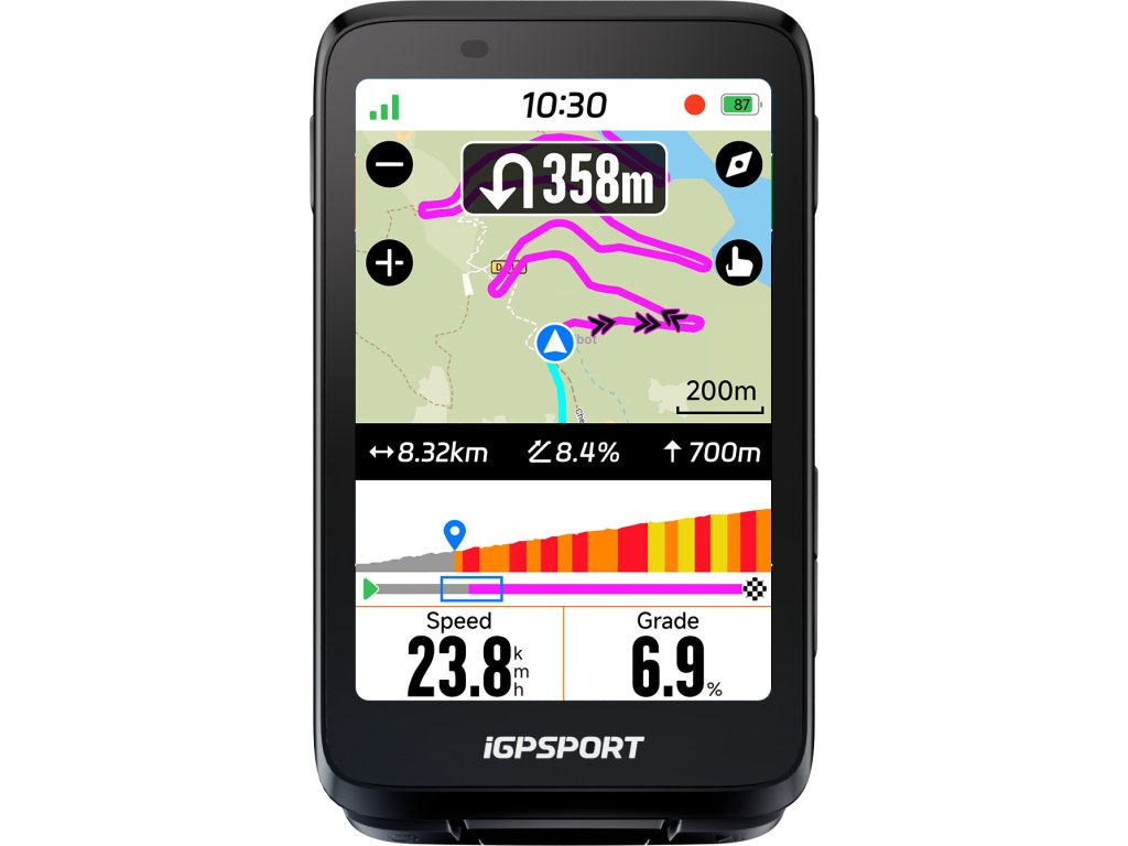 iGPSPORT iGPS630S je pokročilá cyklistická GPS navigace s velkým 2,8" barevným displejem, dlouhou výdrží baterie (až 35 hodin) a precizním satelitním systémem (GPS, Beidou, Galileo, GLONASS, QZSS).