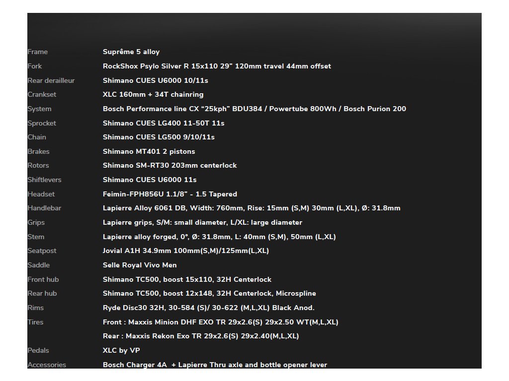 | Představec | Lapierre Alloy 40, A-head, 0˚ |
