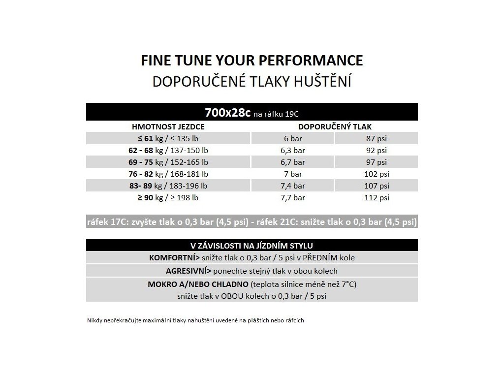 Doporučená šířka ráfku: 19C