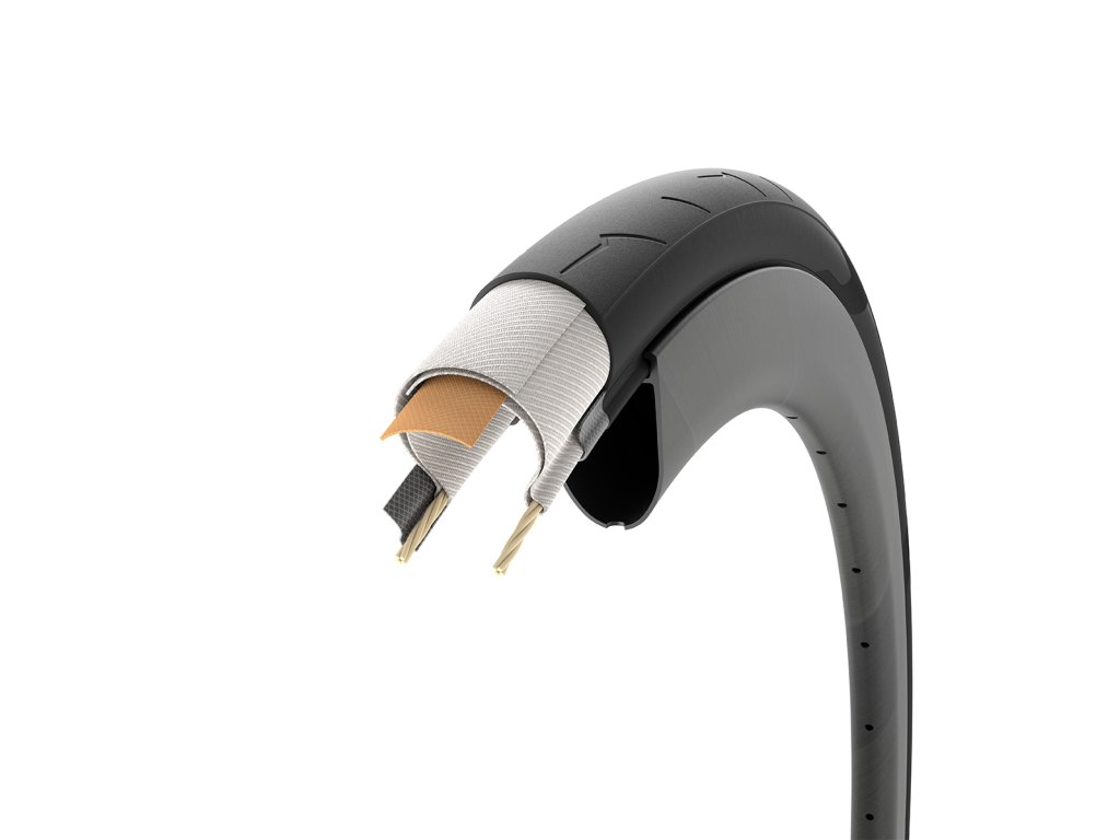 Vysoce-výkonnostní struktura opletu s přidanou vrstvou tkaniny vysoce odolné proti proříznutí pod běhounem, aby plášť mohl poskytnout vynikající odolnost proti propíchnutí v širokém spektru podmínek. Kombinace této vrstvy a vrstev kostry opletu umožňuje dosáhnout pro tuto konstrukci k použití s duší nejefektivnějších parametrů valivého odporu a hmotnosti.